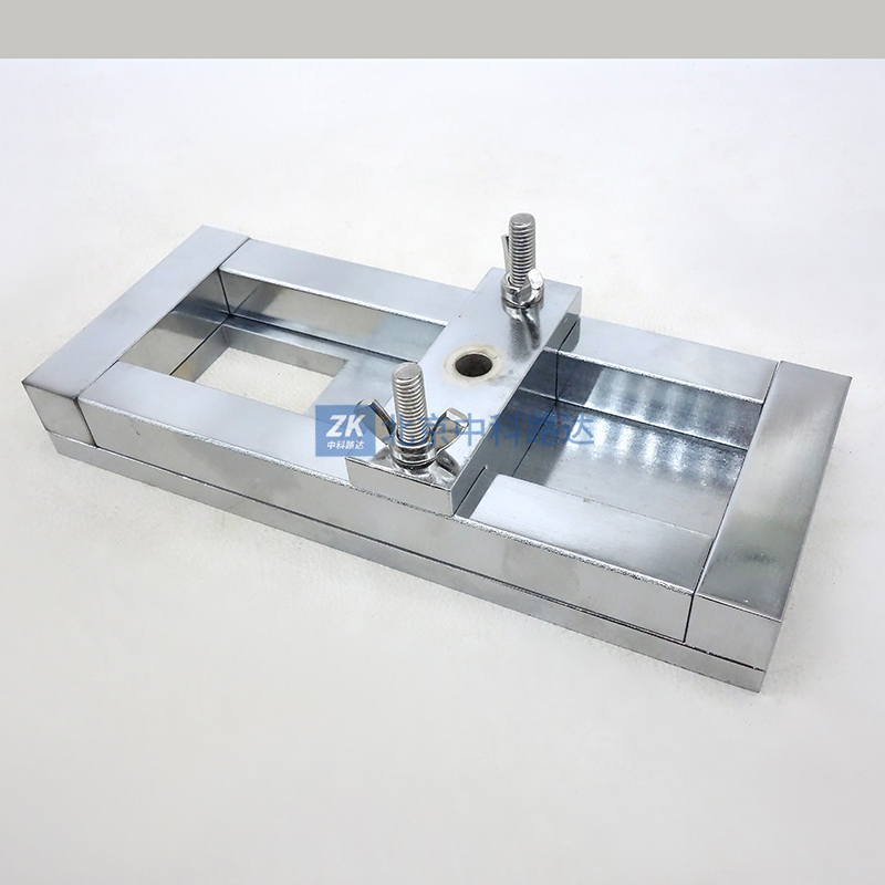 鉆孔夾具用于把數塊試件裝飾層面對面夾在鉆孔夾具上,用鉆孔機在試件中心打孔,直徑為10±0.5mm,鉆孔是,應避免孔邊出現破片、裂紋或燃燒現象(故鉆孔機轉速不可過快,一般不高于400rmin)。