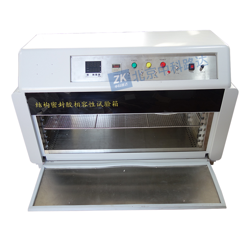 結構密封膠相容性試驗箱用于結構裝配系統附件(如:密封條、間隔條、襯墊條、固定塊等)同密封膠相容性試驗方法及結果的判定,適用于建筑幕墻結構系統的選材。試驗后粘結性和顏色的改變是一項可用來確定材料相容性的關鍵,實踐表明試驗中那些會使粘結性喪失和褪色的附件,在實際使用中也同樣會發生。