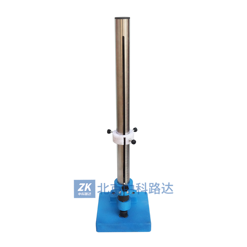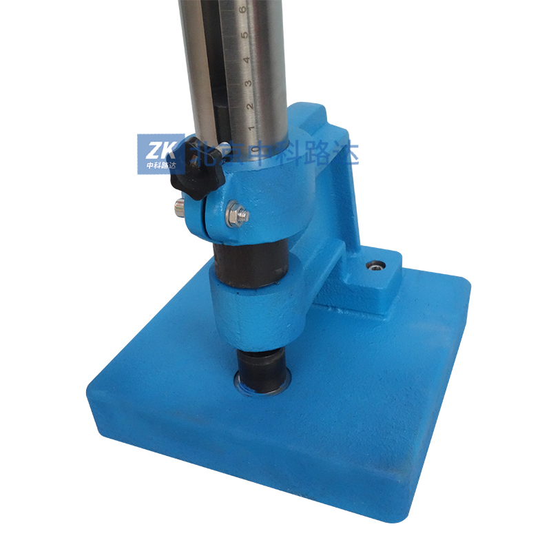根據GB/T1732-1993《漆膜耐沖擊測定法》標準設計,利用重物從高處落下沖擊漆膜,以測定漆膜的沖擊強度。由控制器螺釘將重錘定在所要求的高度上,其高度由定位標上可讀出,按壓控制器螺釘則控制器彈簧被壓縮,這時控制器滑塊的圓孔與控制器上蓋及控制器下底的圓孔對正掛鉤,使所聯結的重錘落下,撞擊沖桿,沖桿向下作用在事先放在枕墊塊上的是樣板上,之后提升重錘體,取出試驗過的樣板以觀察樣板上漆膜試驗情況。