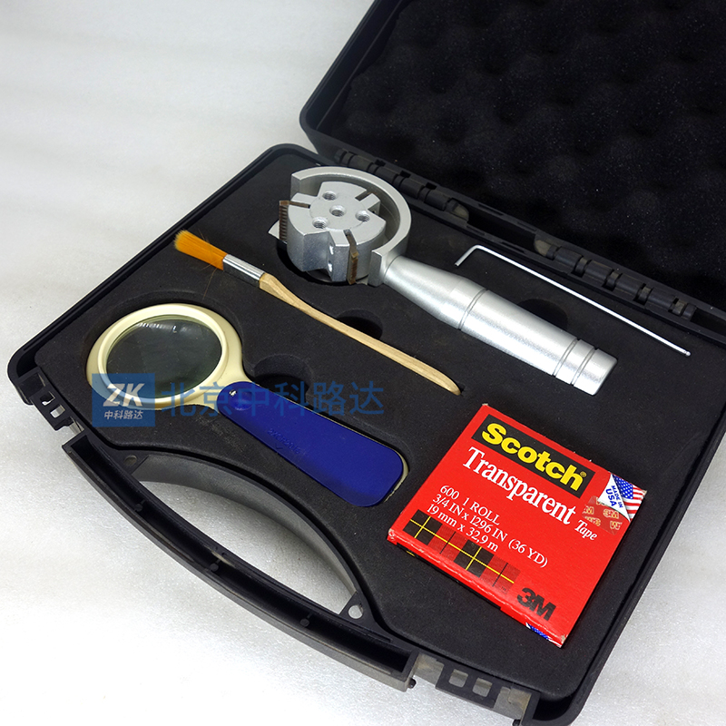 該儀器以一定規格的工具,將涂層做格陣圖形切割并穿透,劃格完成的圖形按六級分類,評定涂層從底材分離的抗性。本劃格器有三個規格間距的多刃切割刀(1mm、2mm、3mm)按不同試驗條件可供選擇,1mm間距的多刃切割刀使用于涂膜厚度<60um的試片,3mm間距的多刃切割刀是為特殊用途而設計的。