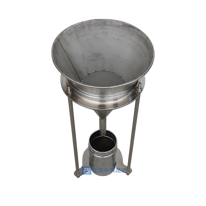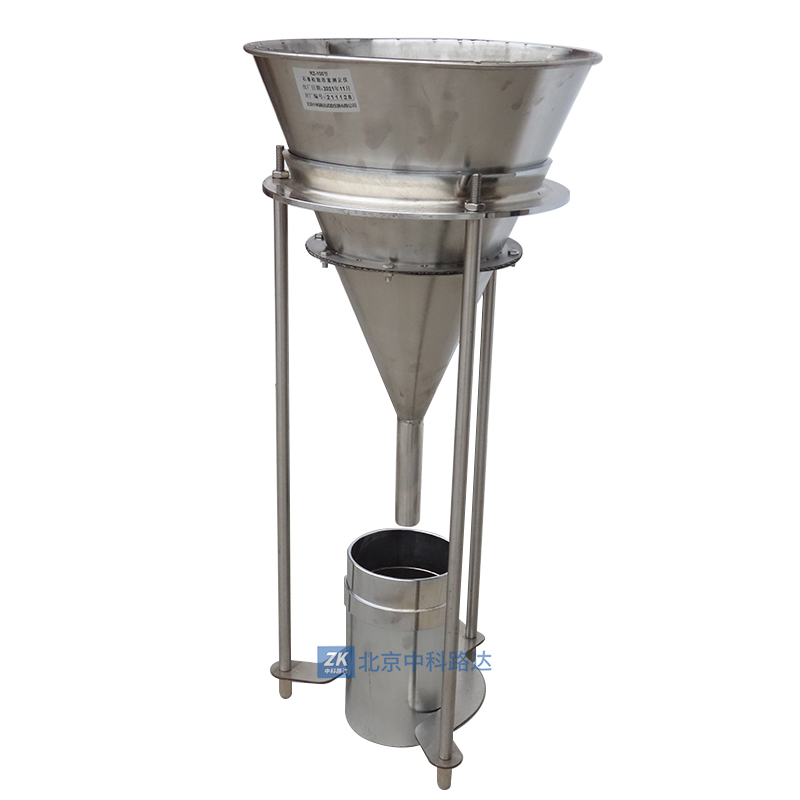 儀器由1.錐形篩。2.三腳支架。3.測量容器(上部是延伸筒、下部是容重桶,其容量是1升)三部分組成。