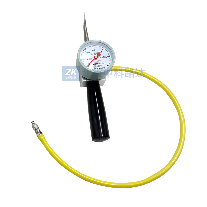 5、檢測之前可對測試針進行測定。方法是用手指壓住充氣針孔,不能有漏氣。對測試針充入一定壓力空氣,數分鐘后壓力表指針讀數不變則正常。