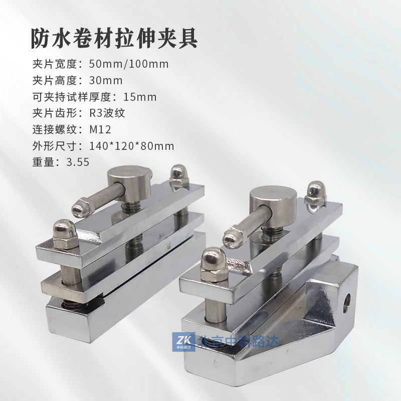 本夾具配合電子拉力試驗機使用,用于測試防水卷材,橡膠片或塑料等材料,夾具具加持緊,不打滑,廣泛應用于防水卷材,橡膠行業或者塑料行業.