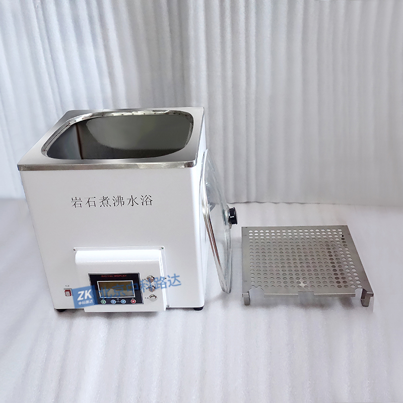 巖石煮沸水浴是根據JTG E41- 2005《公路工程巖石試驗規程》及DL/T 5368-2015《水電水利工程巖石試驗規程》中巖石飽和吸水率沸煮法設計生產的,采用不銹鋼內膽及優質保溫棉制作,具有自動補水,持續煮沸,一鍵排水,防止干燒等功能,并可任意設置其它溫度,設置其它恒溫時間。