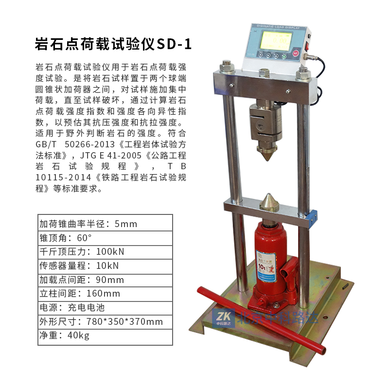 巖石點荷載試驗儀用于巖石點荷載強度試驗。是將巖石試樣置于兩個球端圓錐狀加荷器之間,對試樣施加集中荷載,直至試樣破壞,通過計算巖石點荷載強度指數(shù)和強度各向異性指數(shù),以預(yù)估其抗壓強度和抗拉強度。適用于野外判斷巖石的強度。符合GB/T 50266-2013《工程巖體試驗方法標(biāo)準(zhǔn)》,JTG E 41-2005《公路工程巖石試驗規(guī)程》,TB 10115-2014《鐵路工程巖石試驗規(guī)程》等標(biāo)準(zhǔn)要求。