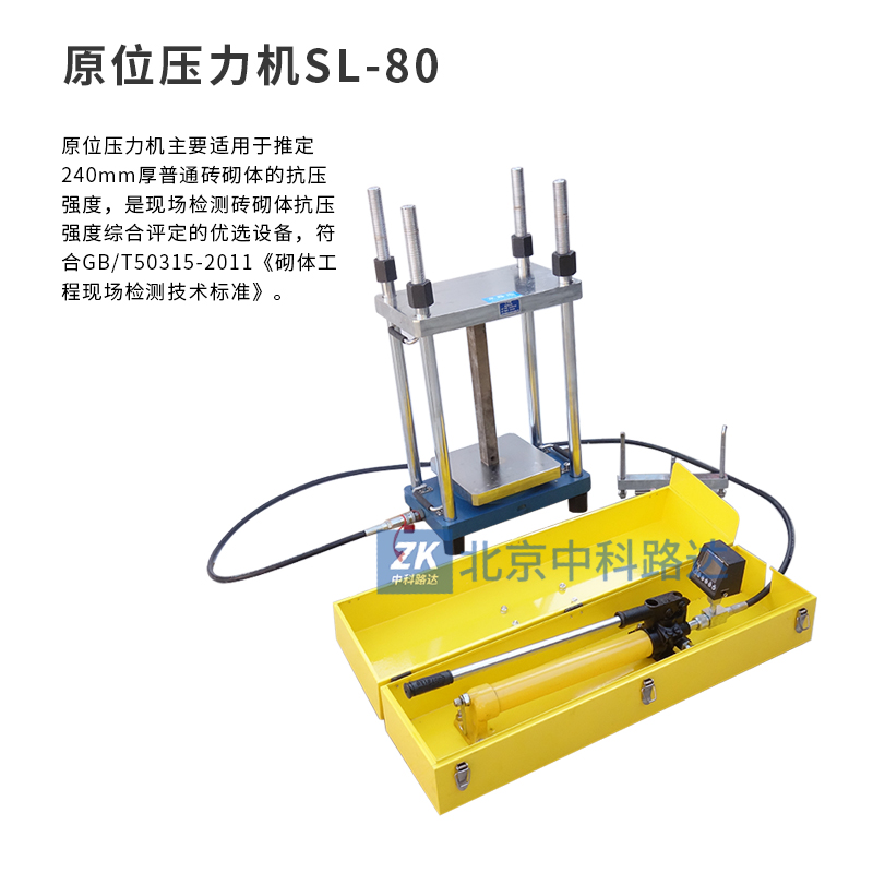 原位壓力機主要適用于推定240mm厚普通磚砌體的抗壓強度,是現場檢測磚砌體抗壓強度綜合評定的優選設備,符合GB/T50315-2011《砌體工程現場檢測技術標準》。