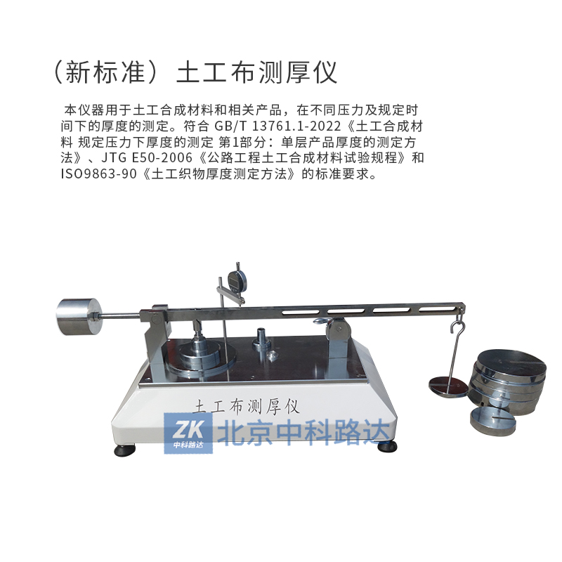 GB/T 13761.1-2022《土工合成材料 規定壓力下厚度的測定 第1部分:單層產品厚度的測定方法》、JTG E50-2006《公路工程土工合成材料試驗規程》和ISO9863-90《土工織物厚度測定方法》的標準要求。
