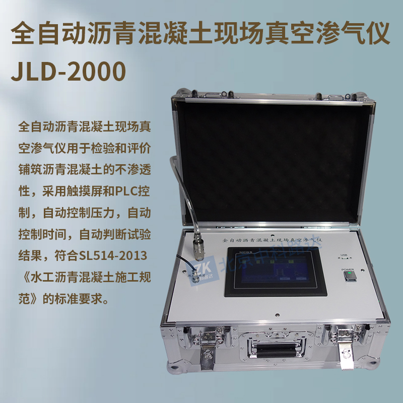 全自動(dòng)瀝青混凝土現(xiàn)場(chǎng)真空滲氣儀用于檢驗(yàn)和評(píng)價(jià)鋪筑瀝青混凝土的不滲透性,采用觸摸屏和PLC控制,自動(dòng)控制壓力,自動(dòng)控制時(shí)間,自動(dòng)判斷試驗(yàn)結(jié)果,符合SL514-2013《水工瀝青混凝土施工規(guī)范》的標(biāo)準(zhǔn)要求。