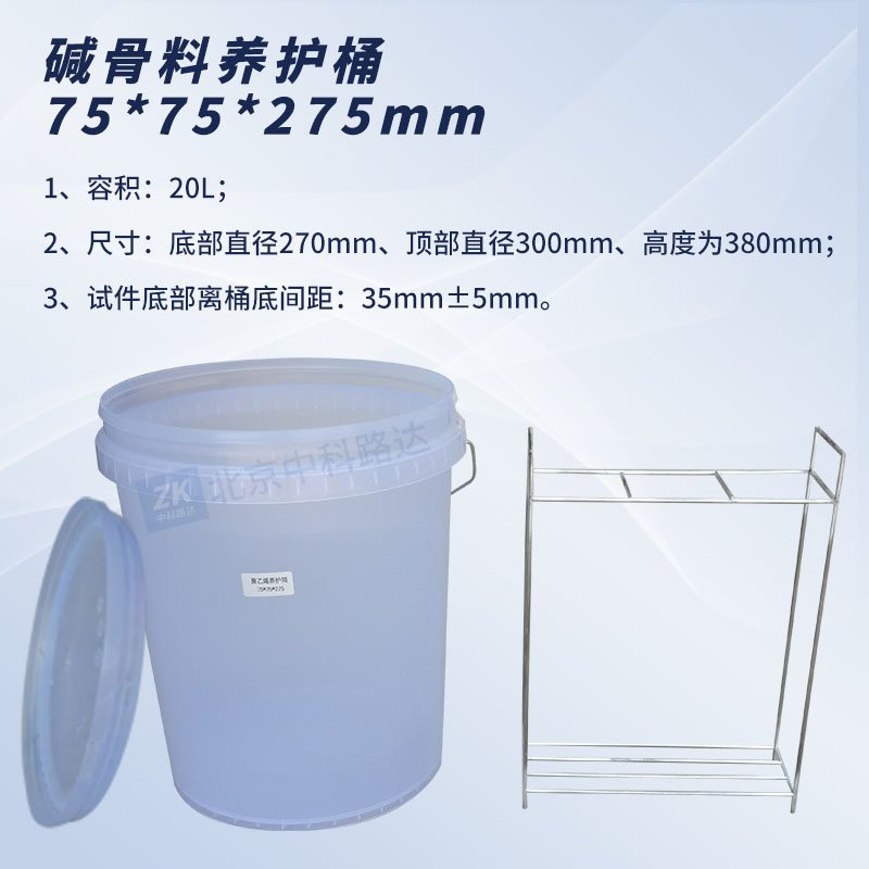 75*75*275mm養護桶用于混凝土棱柱體試件的養護,采用耐腐蝕耐高溫聚乙烯制成,帶密封蓋,密封良好,內設帶孔試件架,符合JTG 3432-2024《公路工程集料試驗規程》中T0368-2024集料堿活性檢驗(混凝土棱柱體法)的標準要求。