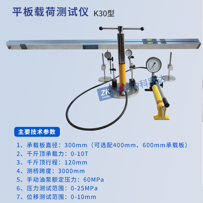 平板載荷測試儀適用于粗、細粒土和土填壓實后的路基、基層等的地基系數的試驗,也可用于計算均勻地基土的變形模量,測定土體在荷載作用下,沉降量基準值所對應的荷載強度與沉降量基準值的比值。符合TB10102-2023《鐵路土工試驗規程》的標準要求