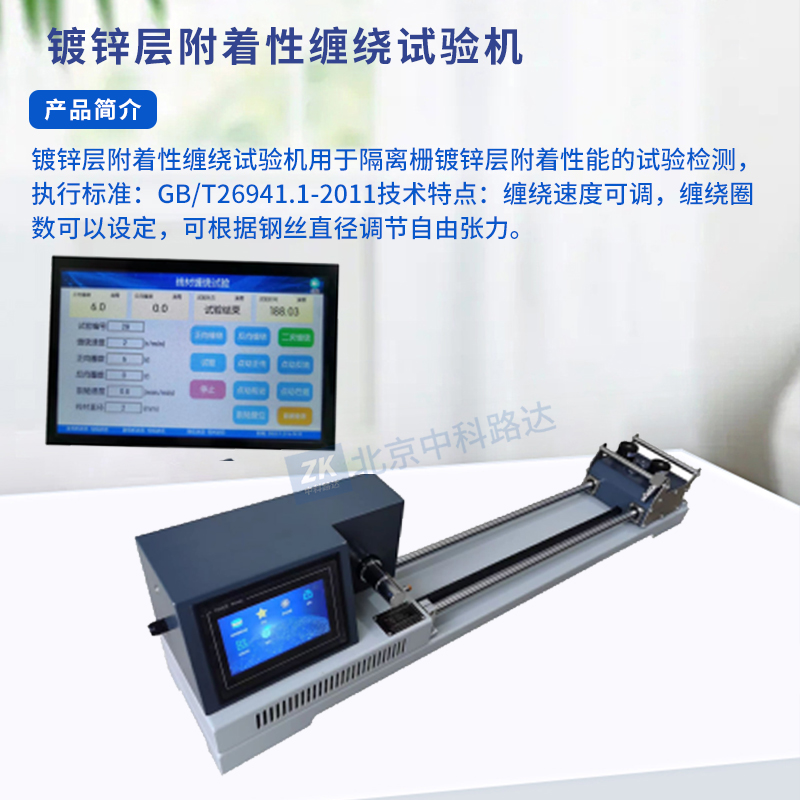 CR-10型鍍鋅層附著性纏繞試驗機用于隔離柵鍍鋅層附著性能的試驗檢測,執行標準:GB/T26941.1-2011技術特點:纏繞速度可調,纏繞圈數可以設定,可根據鋼絲直徑調節自由張力。...