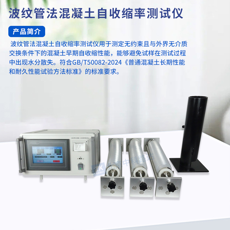 波紋管法混凝土自收縮率測(cè)試儀用于測(cè)定無(wú)約束且與外界無(wú)介質(zhì)交換條件下的混凝土早期自收縮性能,能夠避免試樣在測(cè)試過(guò)程中出現(xiàn)水分散失。符合GB/T50082-2024《普通混凝土長(zhǎng)期性能和耐久性能試驗(yàn)方法標(biāo)準(zhǔn)》的標(biāo)準(zhǔn)要求。