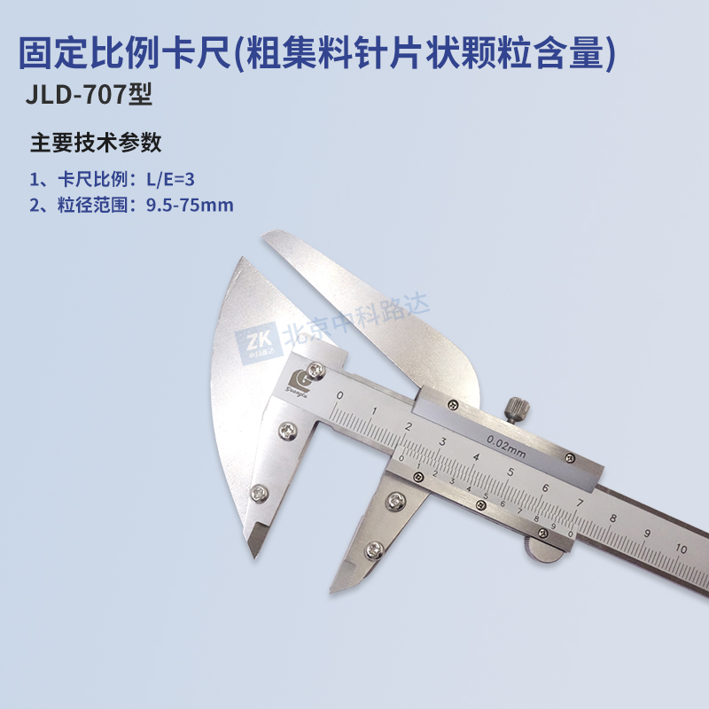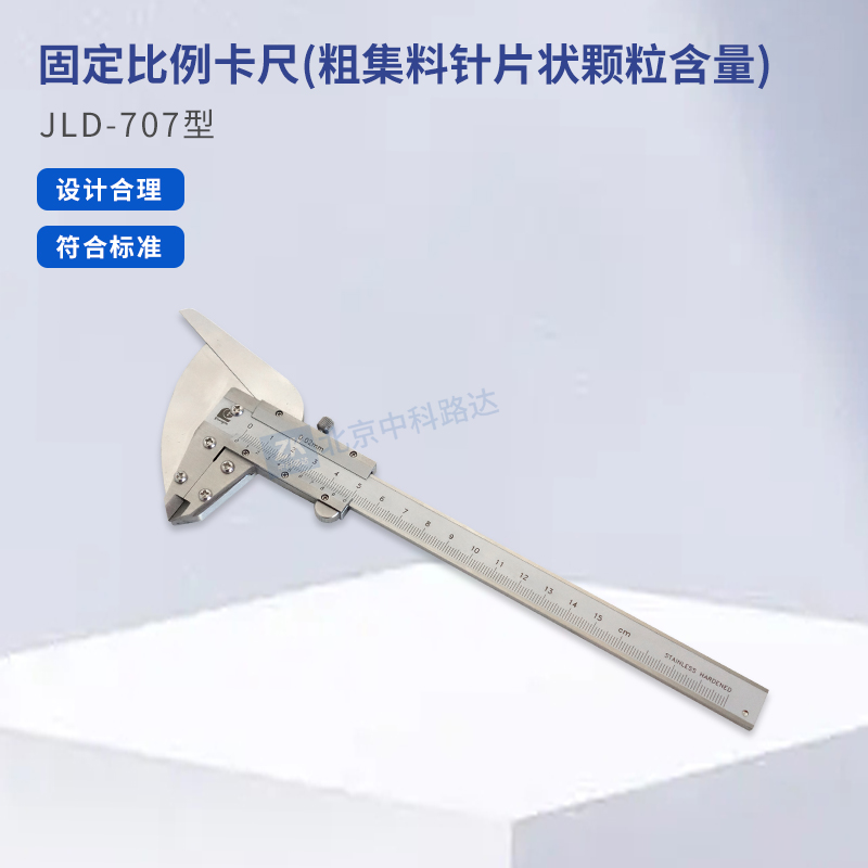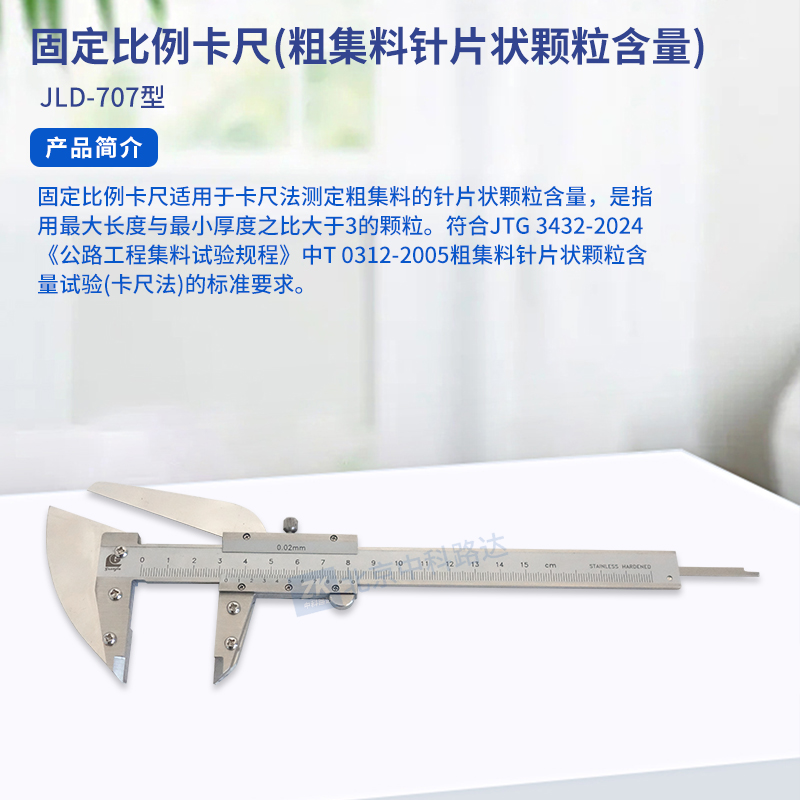 固定比例卡尺適用于卡尺法測定粗集料的針片狀顆粒含量,是指用最大長度與最小厚度之比大于3的顆粒。符合JTG 3432-2024《公路工程集料試驗規程》中T 0312-2005粗集料針片狀顆粒含量試驗(卡尺法)的標準要求。