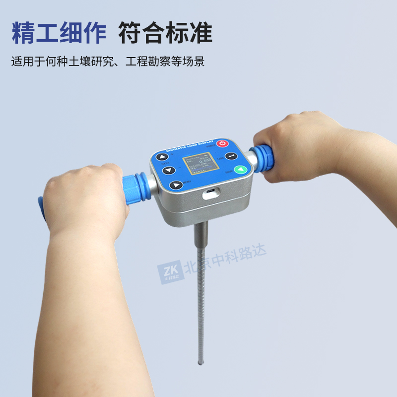 土壤錐形貫入儀以貫入方式測量土壤阻力獲得土壤圓錐指數,也叫做土壤堅實度儀、土壤硬度計、土壤緊實度儀或土壤圓錐指數儀。適用于何種土壤研究、工程勘察等場景。通過力值傳感器和軸桿連接錐頭,錐頭貫入土壤時,傳感器返回的力值信號通過24位A/D轉換器轉換成數字信號,經MCU處理后由OLED顯示器顯示力值,根據貫入阻力計算土壤圓錐指數的公式(土壤圓錐指數計算公式I=F/A),自動計算土壤圓錐指數。...